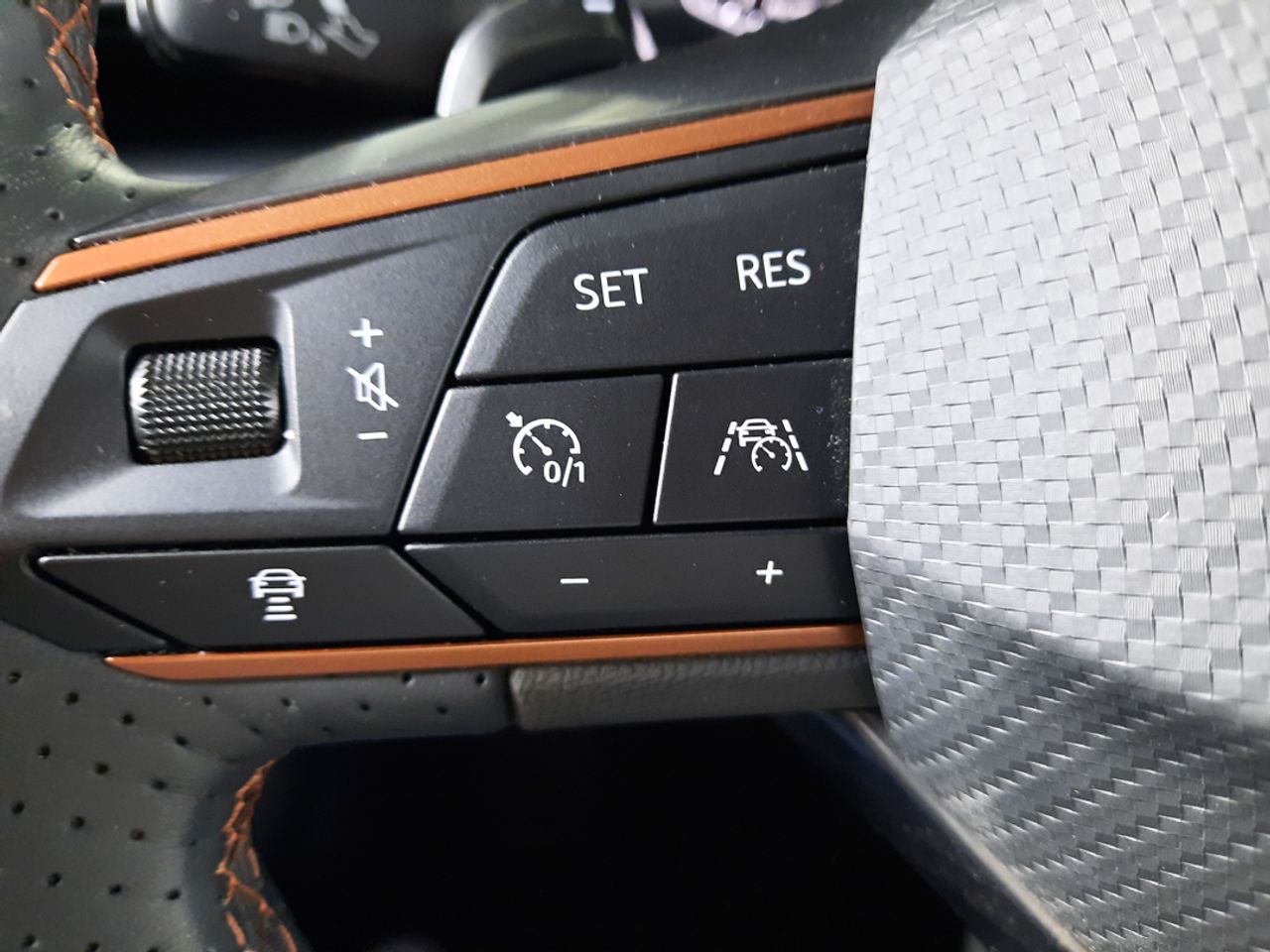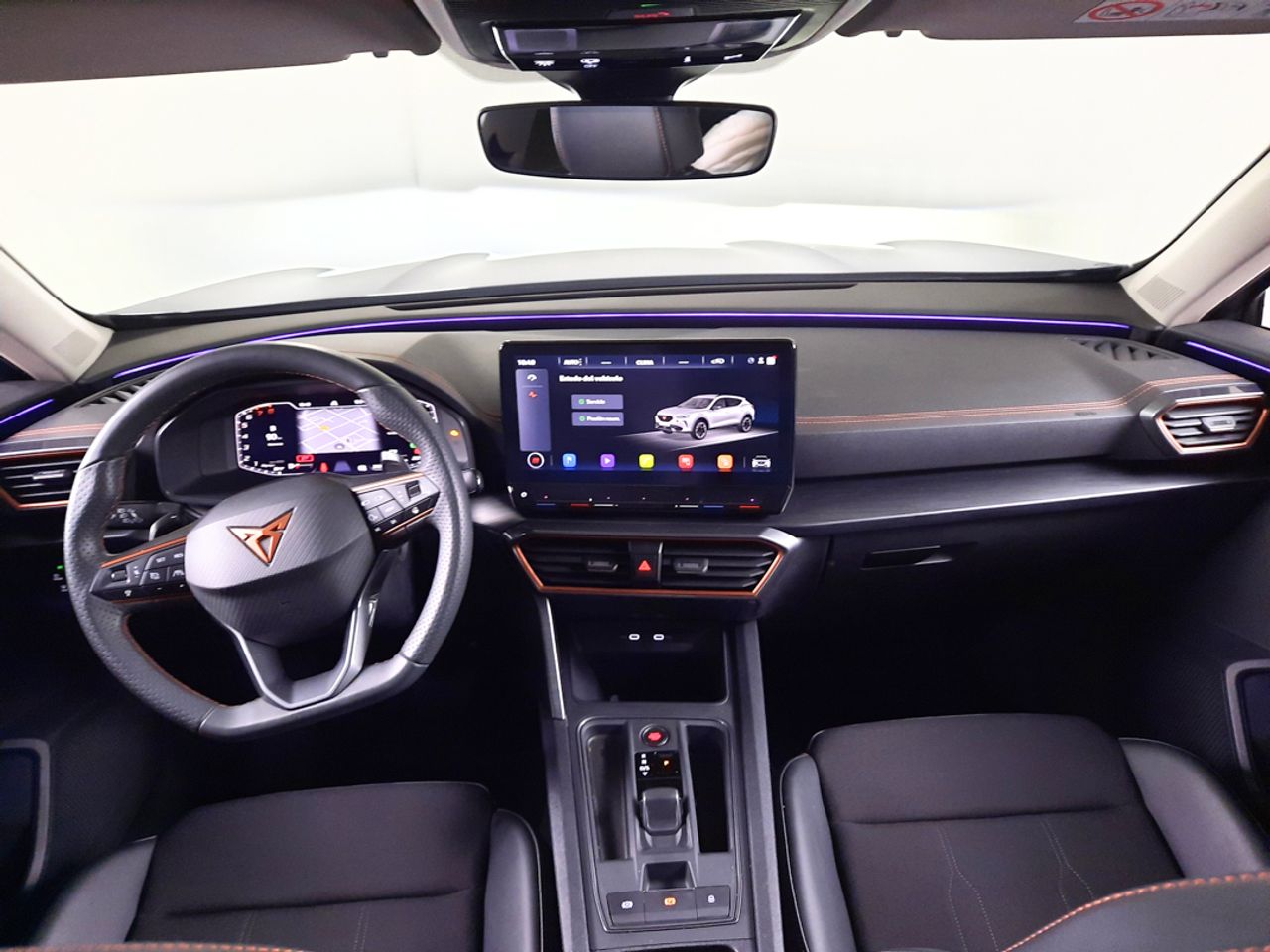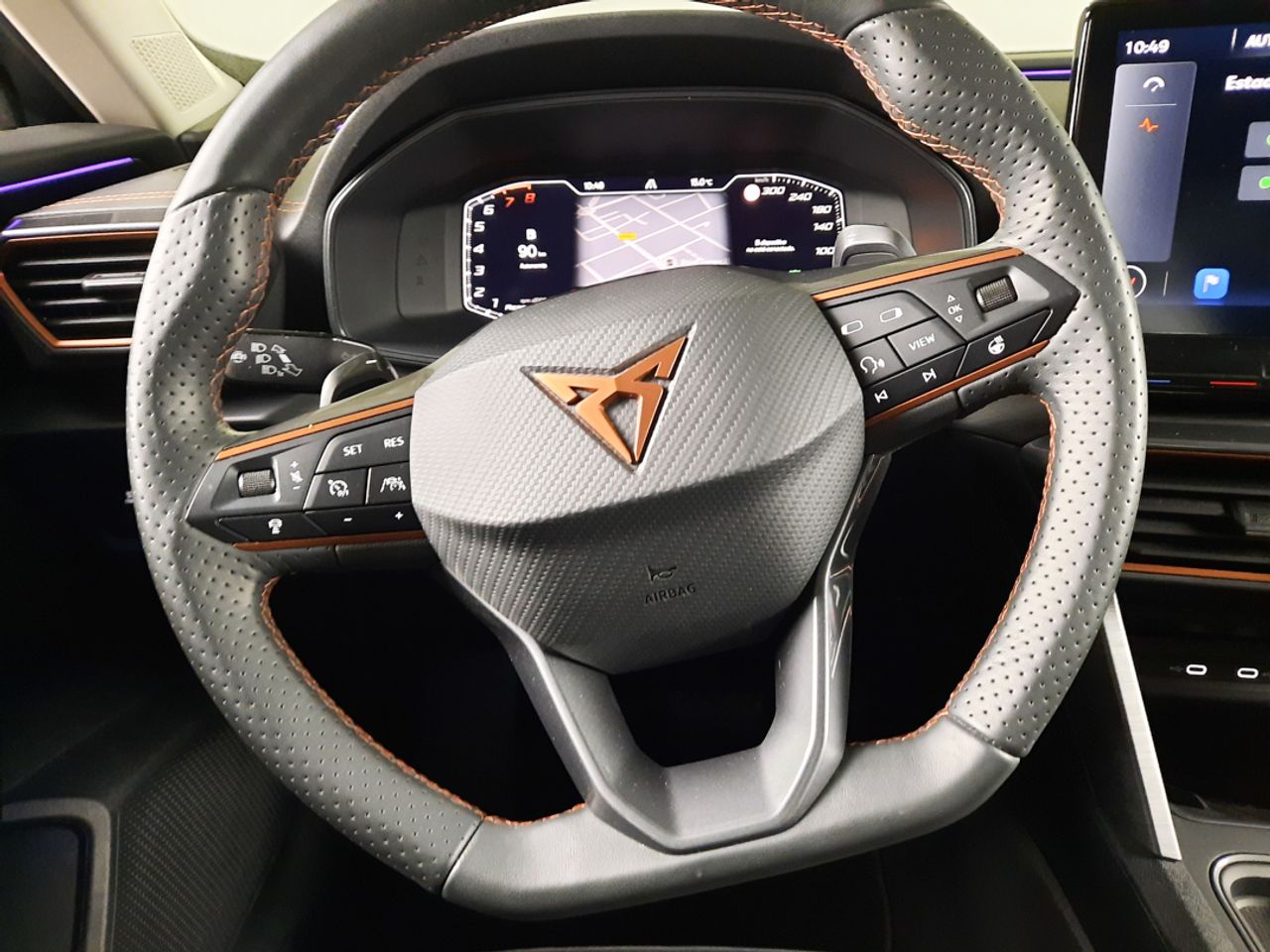 Volante superdeportivo en piel calefactable, botones integrados, modo CUPRA y levas de cambio